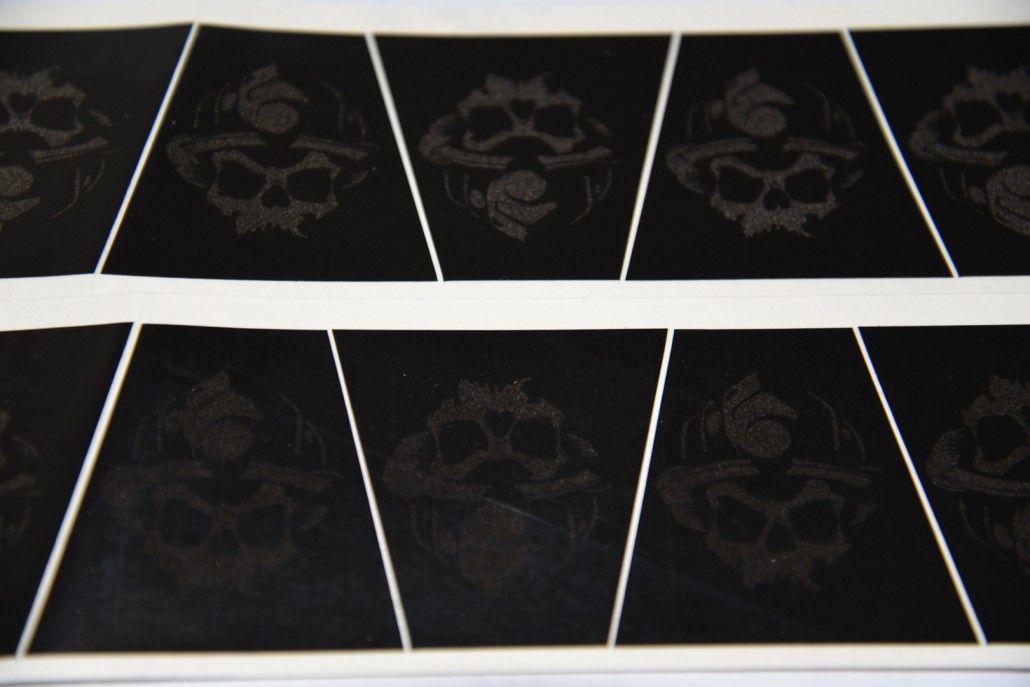 Black Helmet Skull logo printed in black on silver 3M Scotchlite Reflective Material.